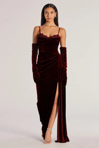 Ilse Velvet Bow Strap High Slit Mermaid Dress