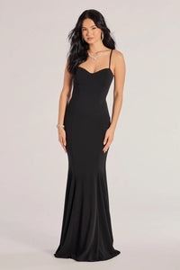 Showcase your stunning curves in the Emmaline mermaid dress at your next formal affair. The crepe dress is designed with a sleeveless sweetheart neckline, adjustable spaghetti straps for a customized fit, a sheer lace back leading to a lower back cutout with a dainty lace trim, and a floor-length mermaid silhouette to flaunt your gorgeous figure.
