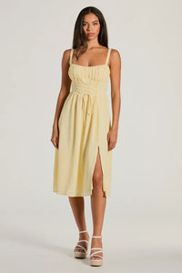 Modern Romance Sleeveless Lace-Up A-Line Midi Dress Modern Romance Sleeveless Lace-Up A-Line Midi DressDesigned for a modern-day romance, this sleeveless woven midi dress is perfect for day dates! The sweetheart ruched neckline and adjustable straps are flattering, while the lace-up design cinches your waist for a beautiful silhouette. The front slit adds a touch of allure to this A-line midi-length dress. Complete the look in strappy wedges. Fit & Features - Texture woven fabrication with a woven lining