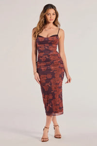 Romantic Glam Abstract Floral Ruched Midi Dress