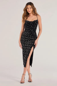 Dazzle Nights Glitter Rhinestone Velvet Midi Dress