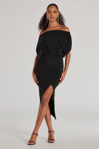 Iconic Silhouette Off-Shoulder High Slit Midi Dress