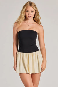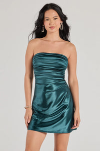 Perfect Glow Strapless Pleat A-Line Satin Mini Dress