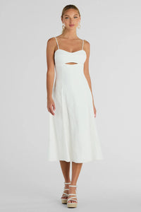 Set yourself up for a sensational look in this sleeveless midi dress for the upcoming season! This playful and flirty dress features a sweetheart neckline and adjustable spaghetti straps for the perfect fit. The cutout bust adds a touch of alluring charm while the A-line silhouette and midi-length hem provide a flattering style. Complete the look in strappy wedge sandals for a shower or graduation!