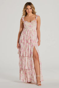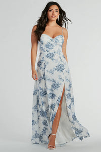 It'll be the most beautiful day spent in the Adeline floral formal dress as a gorgeous plus one at weddings, graduation parties, or banquets! Crafted from sheer chiffon with a stretchy knit lining, it boasts a delicate floral blossom print for a touch of romance. She boasts a sleeveless sweetheart neckline with a padded bust and adjustable spaghetti straps that exude effortless elegance, while the high front slit on the A-line floor-length silhouette provides a flirty allure. Complete the look in simple heels and earrings.