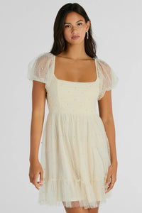 Raise A Toast Puff Sleeve Faux Pearl Babydoll Dress