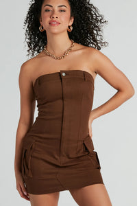 Sensational City Girl Strapless Cargo Mini Dress