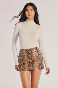 Stay trendy in a textured mini dress that features a mock neck with cutout at the bust, long sleeves, a cozy cable knit pattern, and a mini length hem. Complete look with ankle booties.