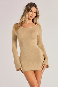 Brea Sequin Beaded Long Sleeve Cowl Back Mini Dress