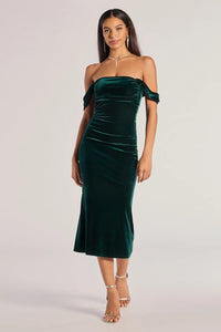 Regal Moment Off-The-Shoulder Velvet Midi Dress