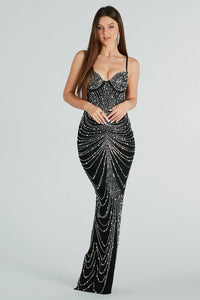 Aubrie Formal Rhinestone And Pearl Mesh Long Dress