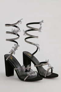 Mythical Babe Butterfly Rhinestone Spiral Stiletto Heels