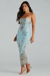 Perfect for a trip to Saint Tropez or embracing a Parisian vibe, this chic floral mesh maxi dress is exactly what you need! The long dress features a sleeveless square neck, bungee spaghetti straps, side ruched seams to accentuate your curves, a flattering bodycon silhouette, and a maxi-length hem. The maxi dress is designed with a dreamy floral print on airy mesh fabric with a stretchy knit lining. Complete the look with a dainty bracelet and sandals.