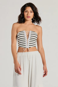 Bold Babe Strapless Lace-Up Striped Crop Top