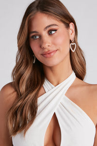 Every girl wants her classy bling! These hoop earrings will give your outfit the loveliest look. Featuring a mini heart-shaped post with rhinestone trim and a medium heart-shaped bottom hoop with faux pearl embellishments. Complete the look with a glam handbag.