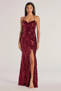 Serve sleek and chic style at your formal affair in the Hallie mermaid dress designed with smooth satin knit fabric that will hug your stunning curves. It features a sleeveless high halter neckline with a knot design, a partially open back, and a head-turning floor-length mermaid silhouette.