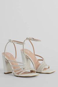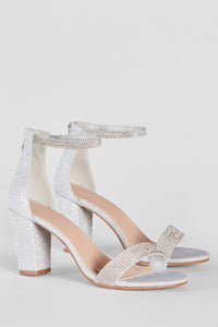 Ready To Party Rhinestone Strappy Metallic Block Heels