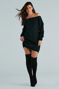 Casual And Cozy Off-The-Shoulder Sweater Dress