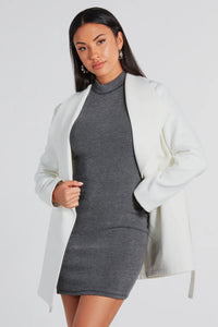 Layer on this trending faux wool trench coat for a charming look in the city! It features long sleeves, a lapel collar neckline, side pockets for keeping your hands warm, and a tie-waist belt and short-length hem. Complete the look in booties for day or night plans!