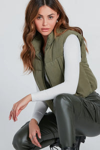 Heading to a winter resort? Layer on this stylish puffer vest for the perfect look! It features a sleeveless standing collar neckline, a front zipper closure, hidden front pockets to keep your hands warm, and a cropped hem. The puffer vest is crafted from an insulated brushed twill nylon-woven lined fabric that offers an extra layer of protection and warmth! Complete the look in cute boots.