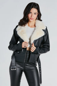- Sherpa trimmed wide collar