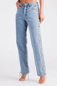 Glam Icon Rhinestone Lace-Up Jeans