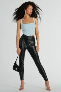 Show off that flawless energy and slay in this trendy corset top! Made with the iconic smooth knit fabric, it offers plenty of stretch and will create a sleek silhouette. The top is shaped with a sleeveless square neckline and thin tank shoulder straps. The flexible boning at the front will give you that fitted snatched look, leading to an angled mid-length hem. Style this corset top with a cargo skirt and mules for drinks with the girls!