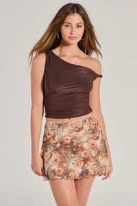 This crop top is exactly what you need to make your crush stop and stare! It boasts a flirty one-shoulder neckline, a fitted silhouette, and a cropped hem that flaunts your cute figure on smooth knit fabric. Complete the look in trendy distressed jeans.